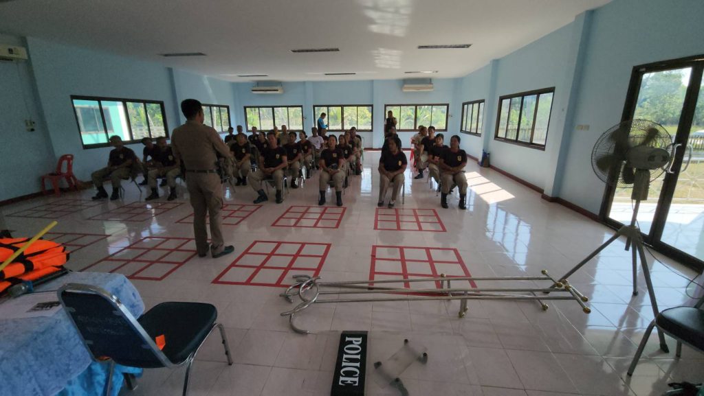 23 กุมภาพันธ์ 2567 เวลา 10.00 น. พ.ต.อ.อานุภาพ จันดิถวงค์ ผกก.สภ.เคียนซา พร้อมด้วย พ.ต.ท.อนุชิต มีพรมแก้ว รอง ผกก.ป.สภ.เคียนซา, พ.ต.ท.ปรีชา สมนุ่น สวป.สภ.เคียนซา และข้าราชการตำรวจ สภ.เคียนซา ร่วมกัน อบรมถ่ายทอดความรู้การใช้ไม้ง่ามระงับเหตุคนคลุ้มคลั่งในชุมชน เพื่อบรรเทาความรุนแรงของสถานการณ์ ก่อนเจ้าหน้าที่ตำรวจเข้าดำเนินการ ให้กับสมาชิก อปพร. เทศบาลตำบลบ้านเสด็จ ณ ศูนย์ดูแลเด็กเล็ก ผู้สูงอายุและผู้พิการ ตำบลบ้านเสด็จ อ.เคียนซา จว.สุราษฎร์ธานี