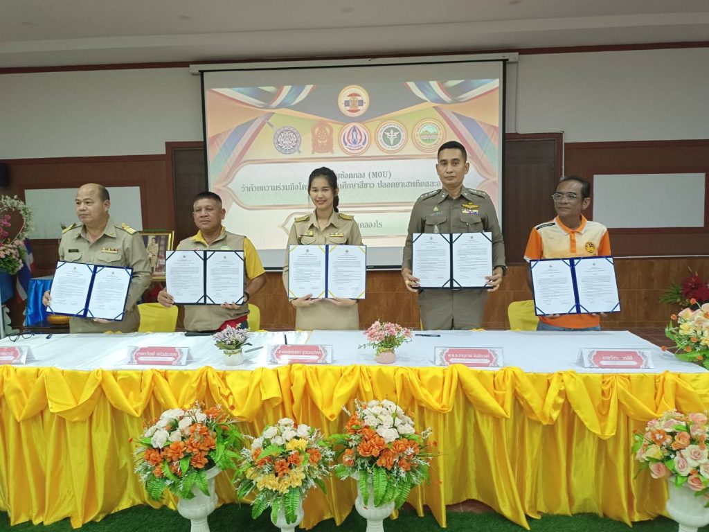 4 ธ.ค.2566 เวลา 13.30 น. พ.ต.อ.อานุภาพ จันดิถวงค์ ผกก.สภ.เคียนซา ร่วมผู้บริหารโรงเรียนผู้นำท้องถิ่นลงนามข้อตกลง(MOU)ว่าด้วยความร่วมมือโครงการสถานศึกษาสีขาว ปลอดยาเสพติดและอบายมุข ณ โรงเรียนบ้านคลองโร ตำบลพ่วงพรมคร อำเภอเคียนซาฯ